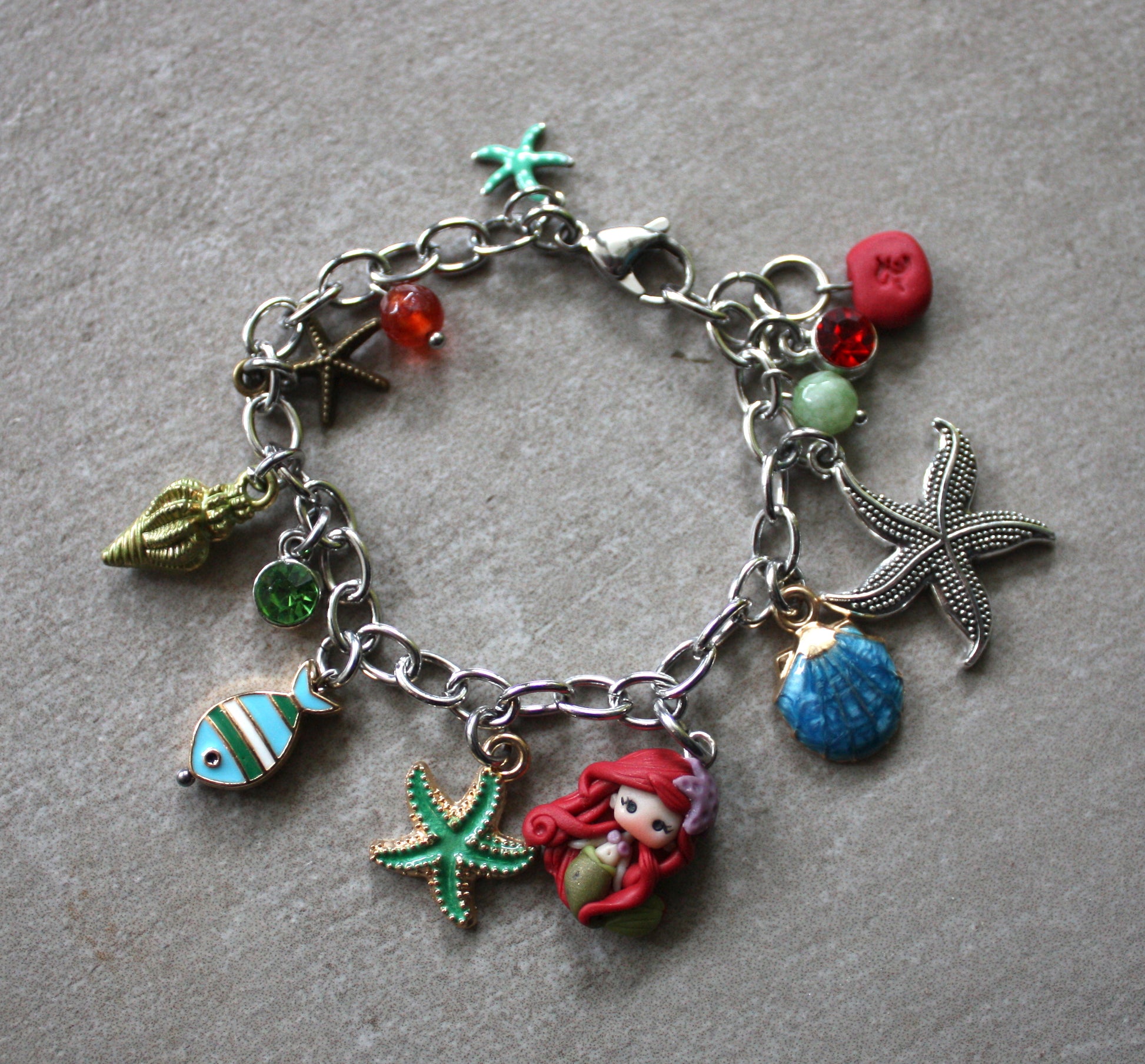 Stainless Steel Multi Charm Bracelet with Polymer Clay Ariel
