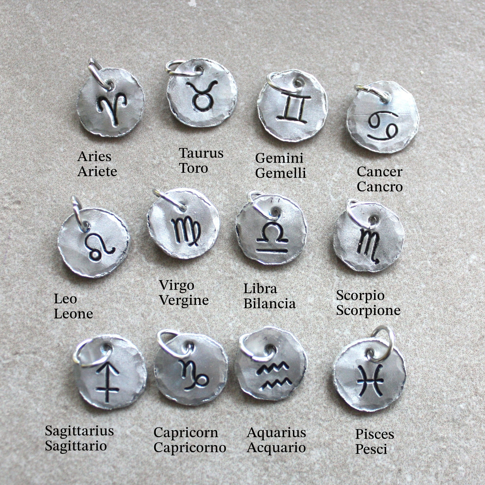 Hand-Engraved Aluminum Zodiac Sign Charm
