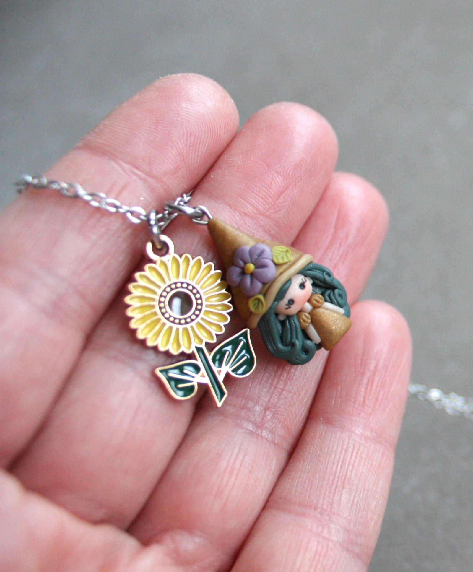Handmade Gnome Necklace in Polymer Clay – Stainless Steel Chain