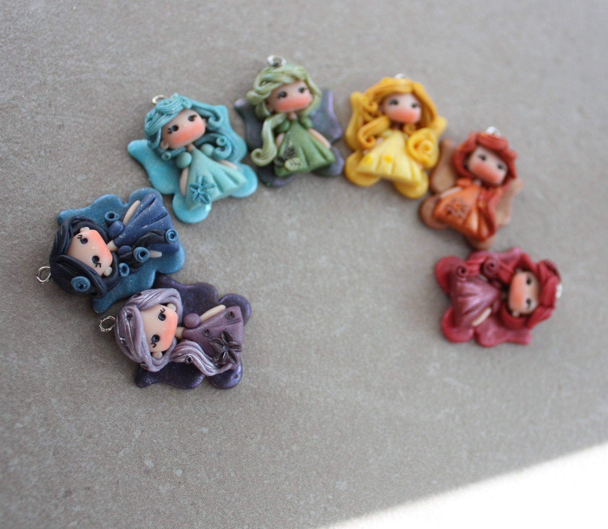 Little rainbow fairies, handcrafted without molds.