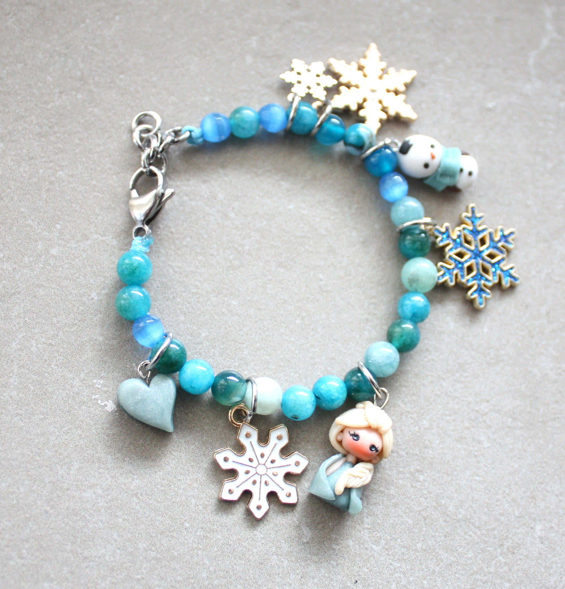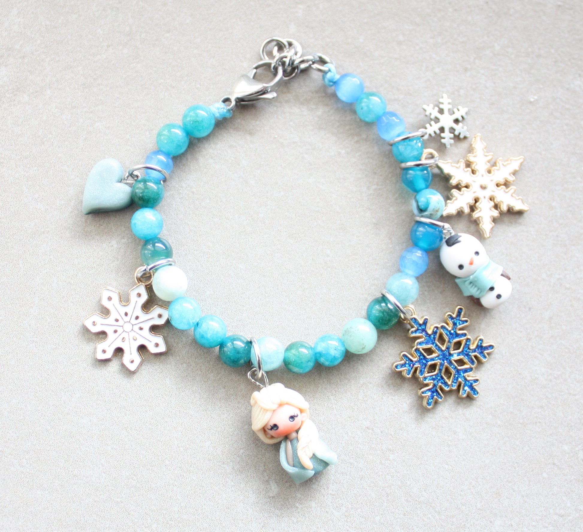 Bracciale Frozen con pietre dure azzurre- Elsa e Olaf in fimo