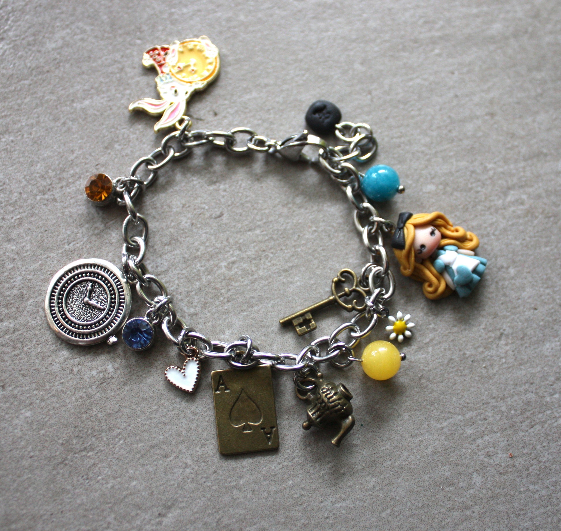 Arricchito da ciondoli a tema e da una piccola Alice modellata a mano in fimo.