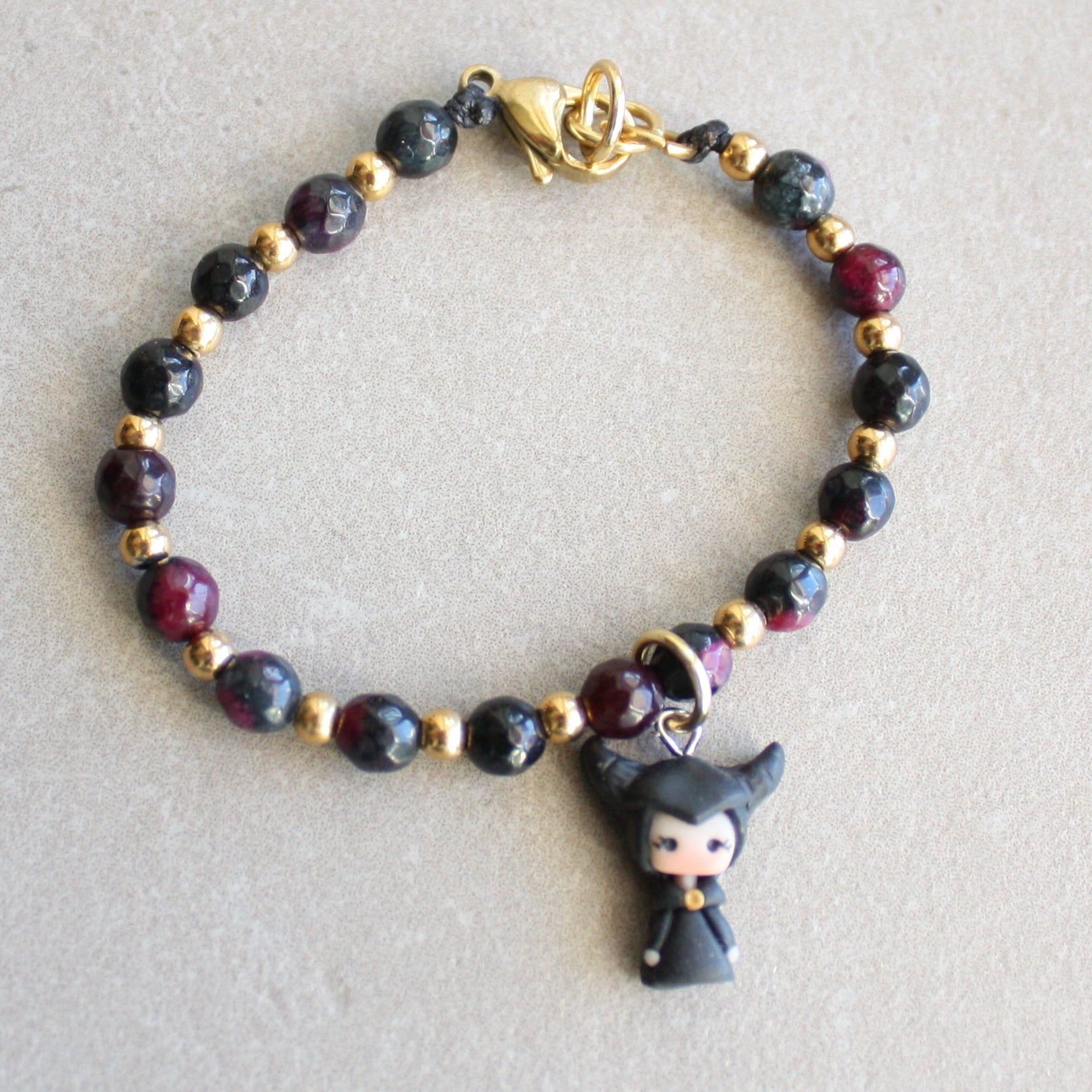 Il ciondolo è una minuscola Malefica di 2 cm, modellata a mano in pasta polimerica con cura e dettagli unici.