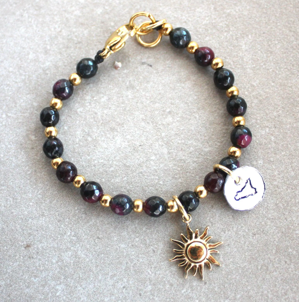 Bracciale con pietre dure e pietre in acciaio inossidabile, con chiusura in acciaio inox dorato.