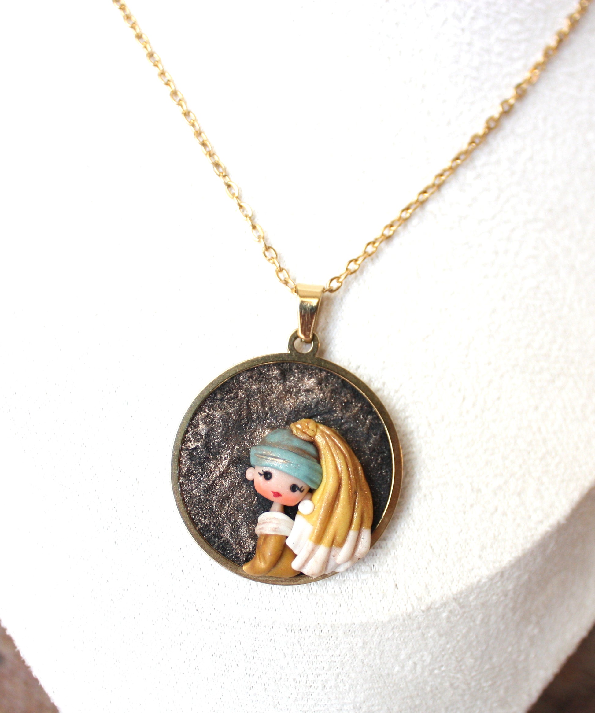 Collana in acciaio inox dorato ispirato al dipinto la Dama con l’orecchino di perla.
