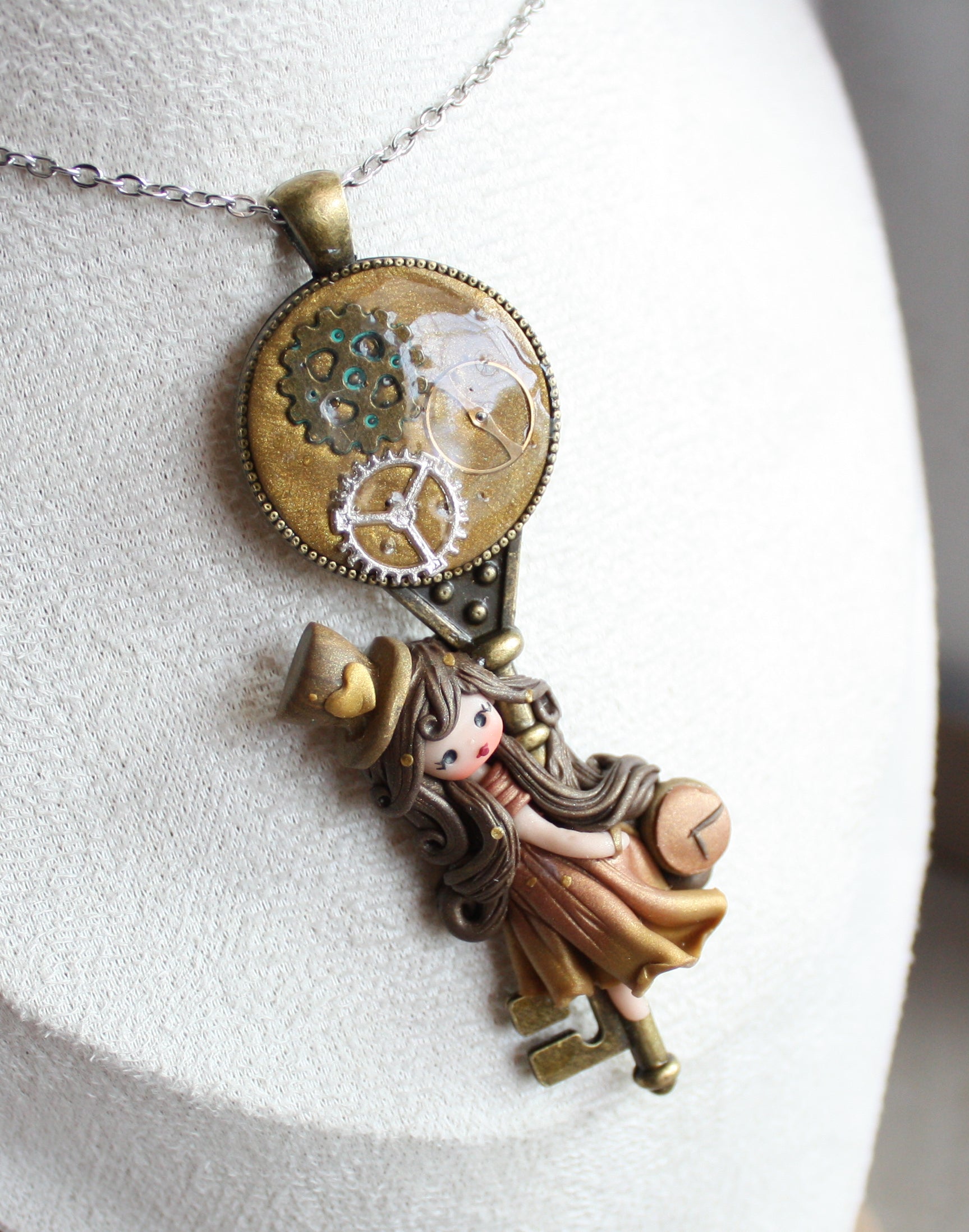 Collana con bambolina artigianale realizzata in pasta polimerica.