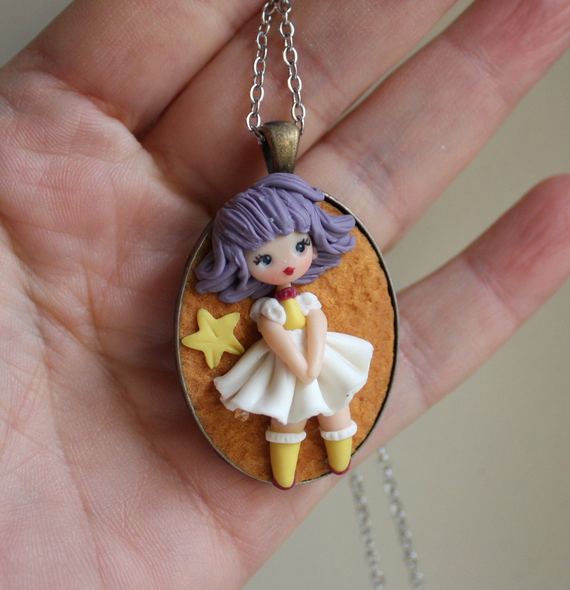 Una collana che profuma di nostalgia: piccola Creamy modellata a mano in pasta polimerica (fimo), pronta a riportarti nel mondo dei cartoons anni ’80.