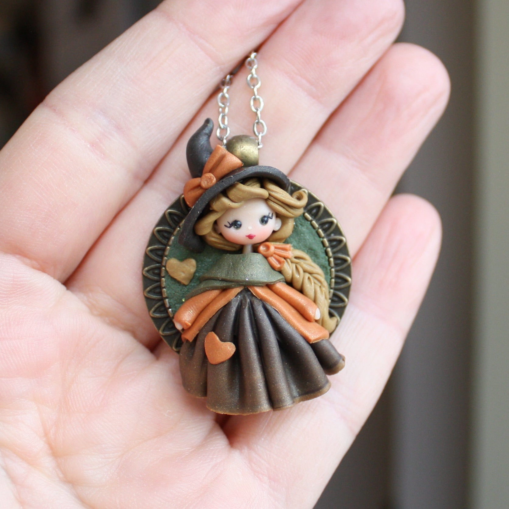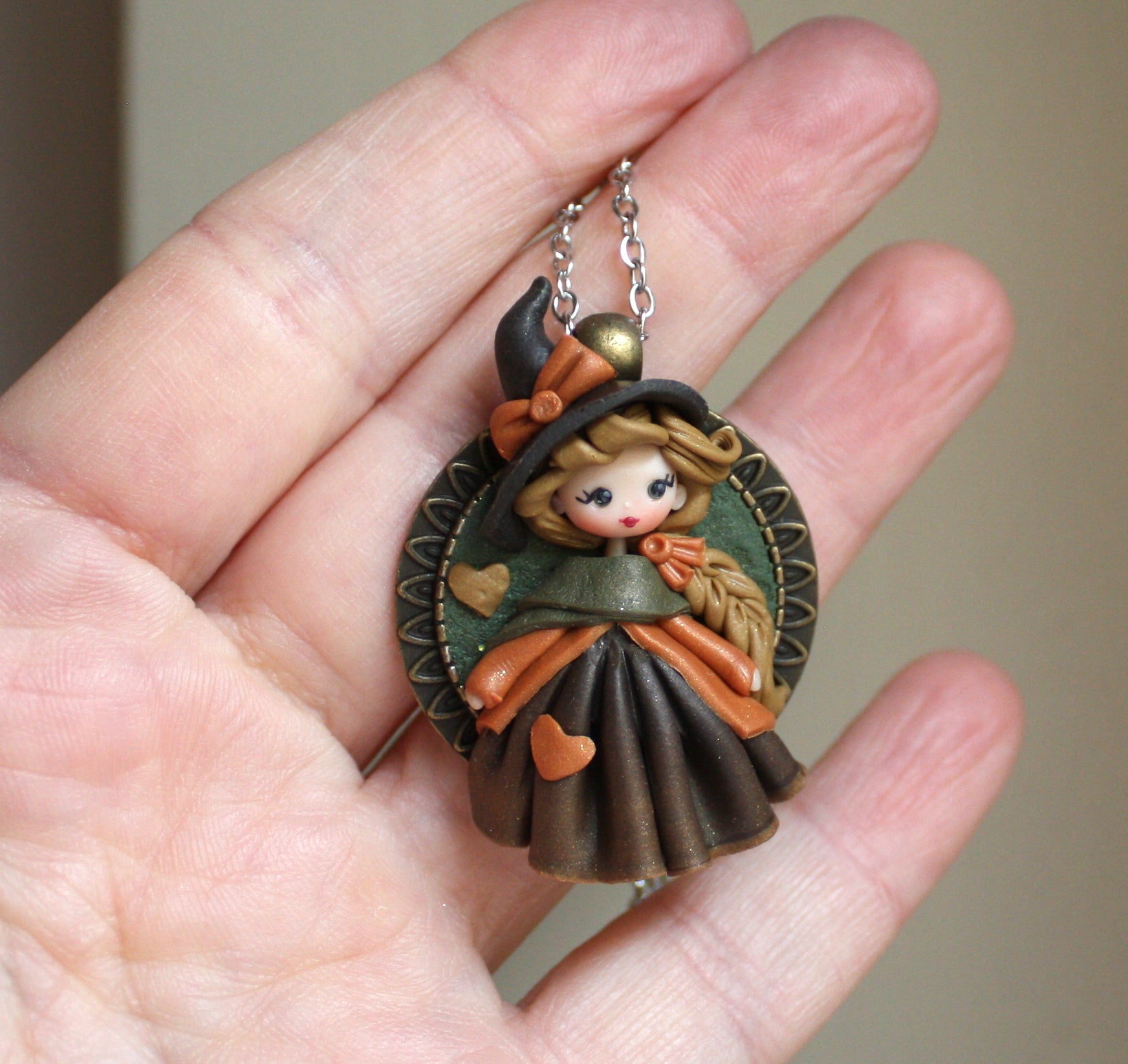 Collana in acciaio inox con piccola streghetta in fimo VII