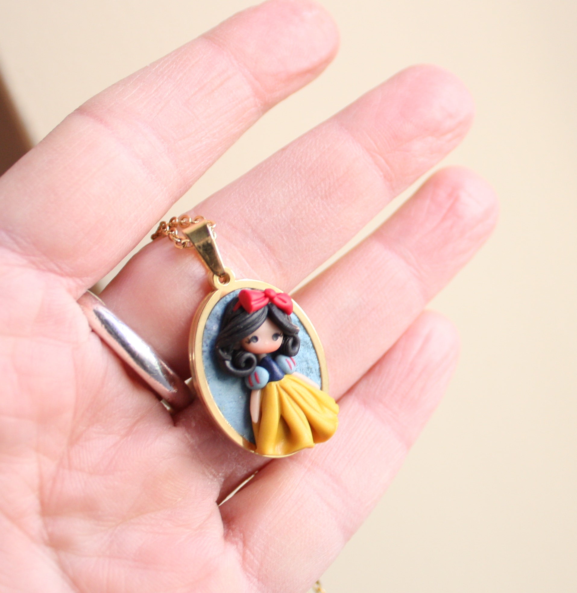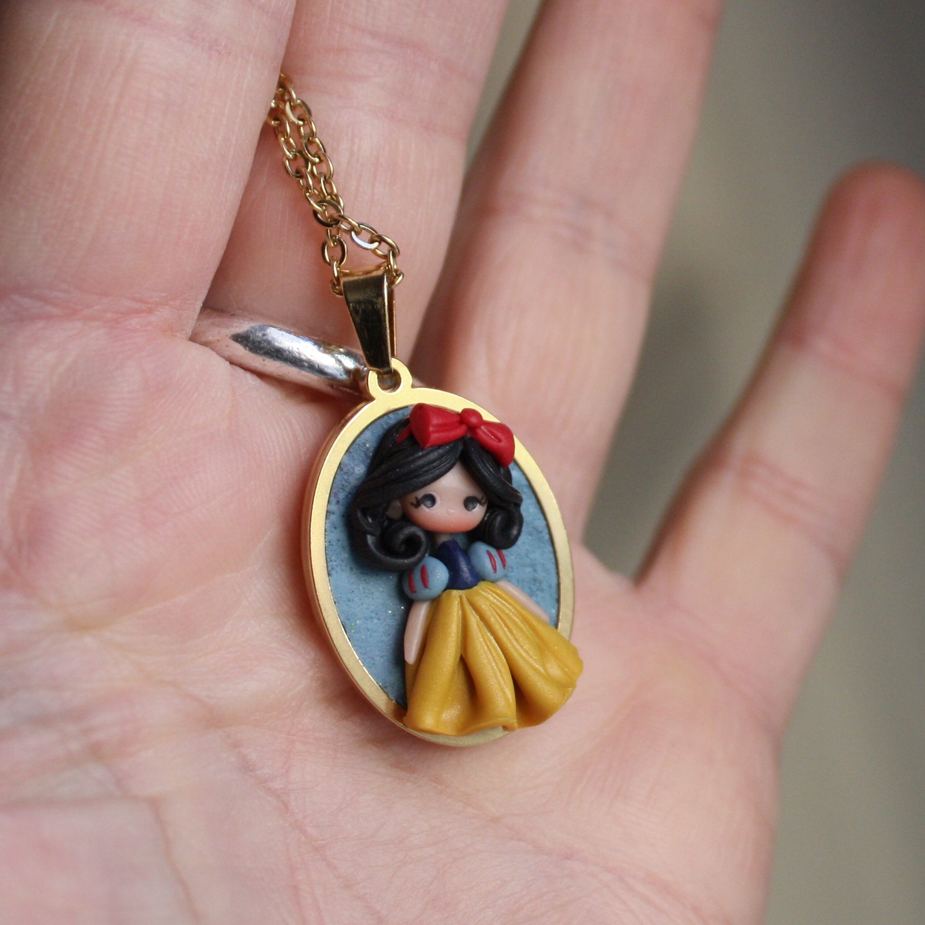 Piccola Biancaneve in pasta polimerica (fimo), modellata a mano senza stampi.