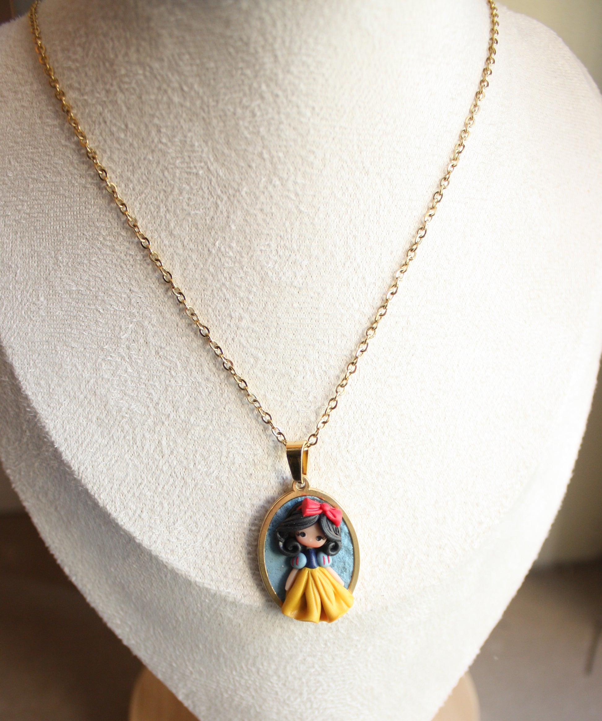Collana in acciaio inox dorato con cammeo Biancaneve II
