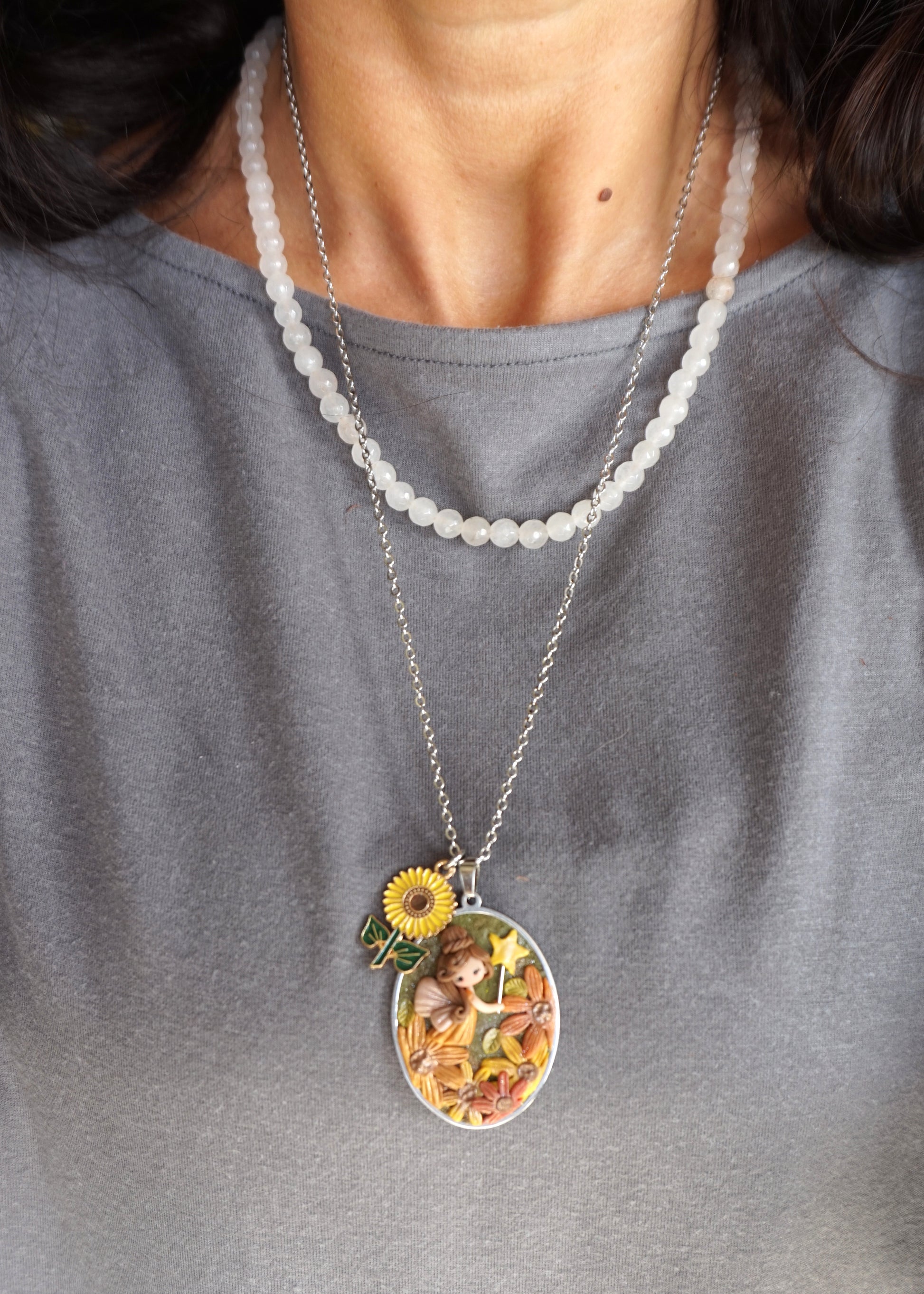 Collana con catena in acciaio inox (55 cm) e cammeo artigianale in pasta polimerica.