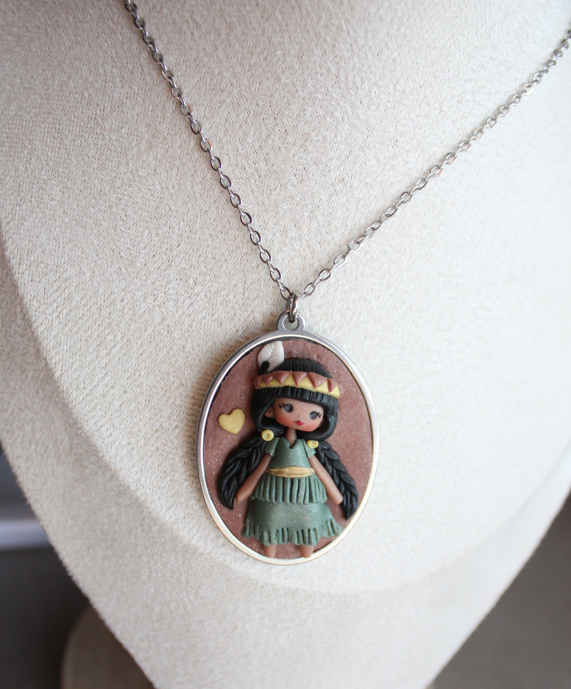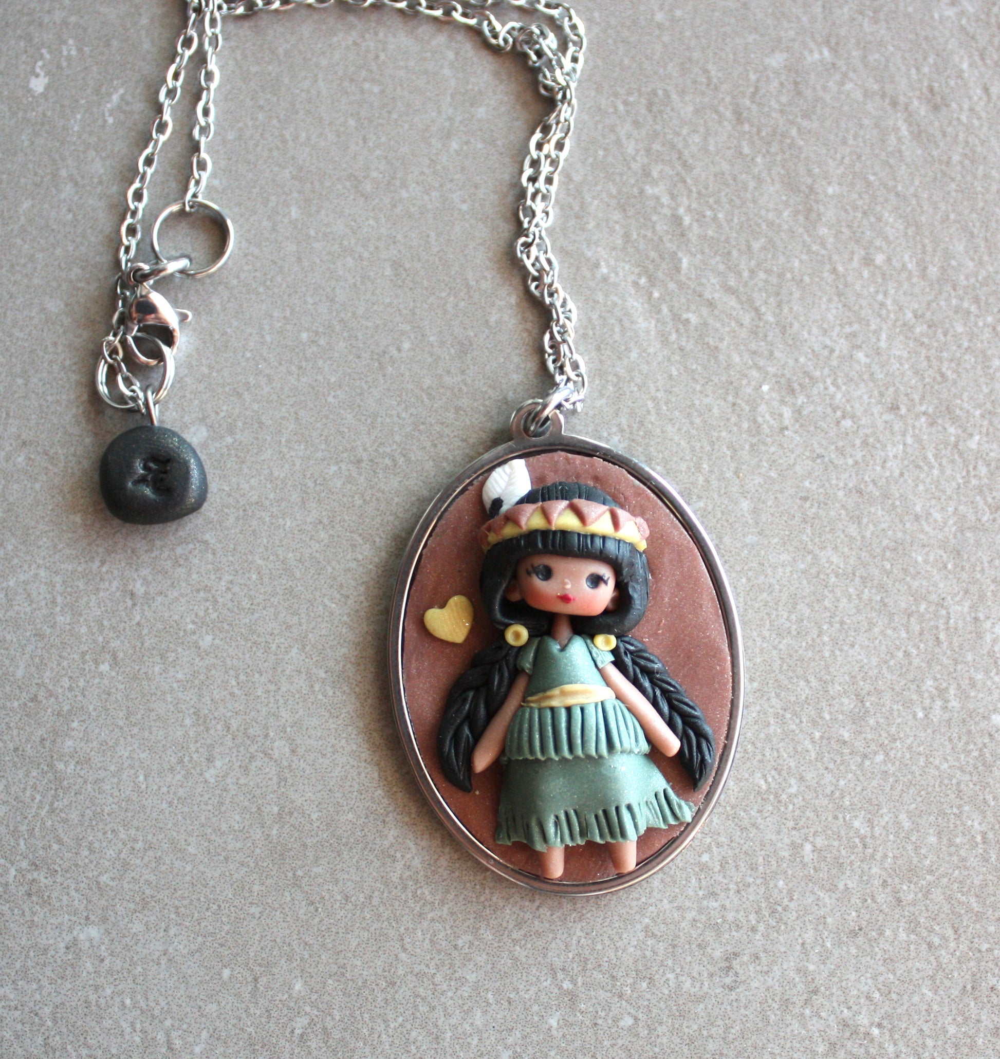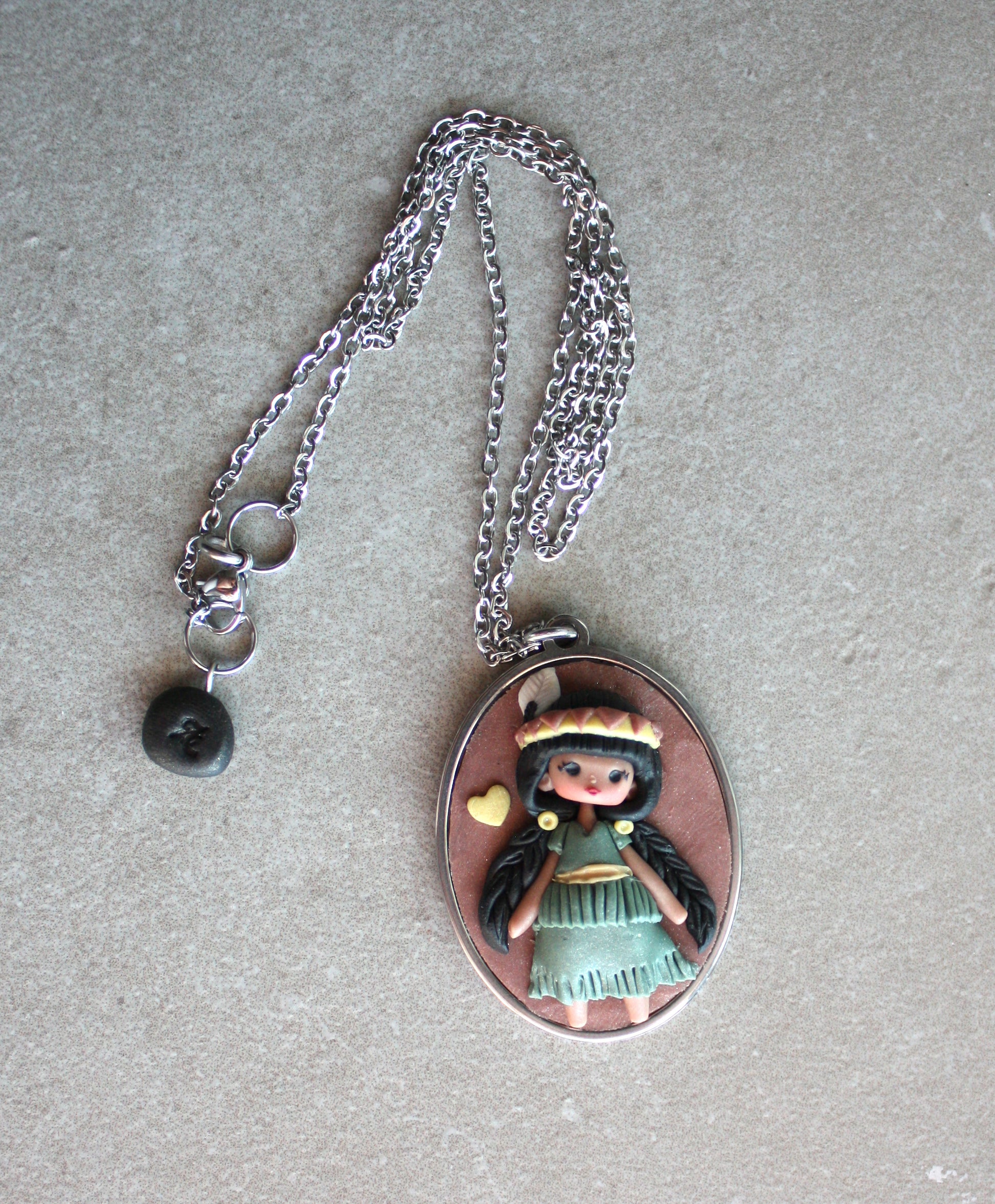 Catena e cammeo in acciaio inox. Lunghezza circa 50 cm.
