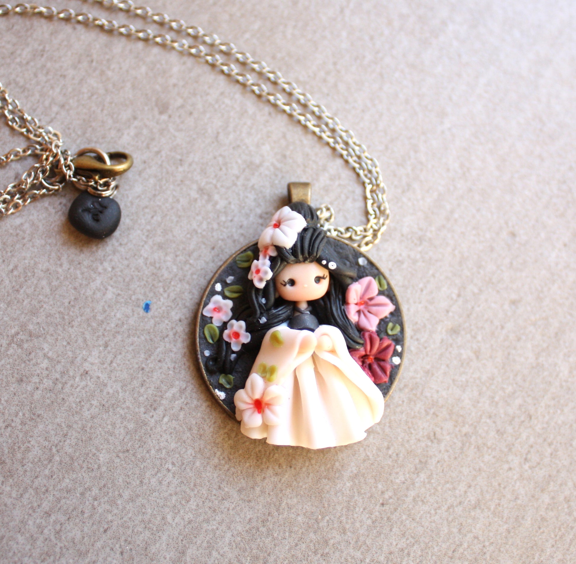 collana in acciaio inox con Ciondolo realizzato a mano in argilla polimerica.
