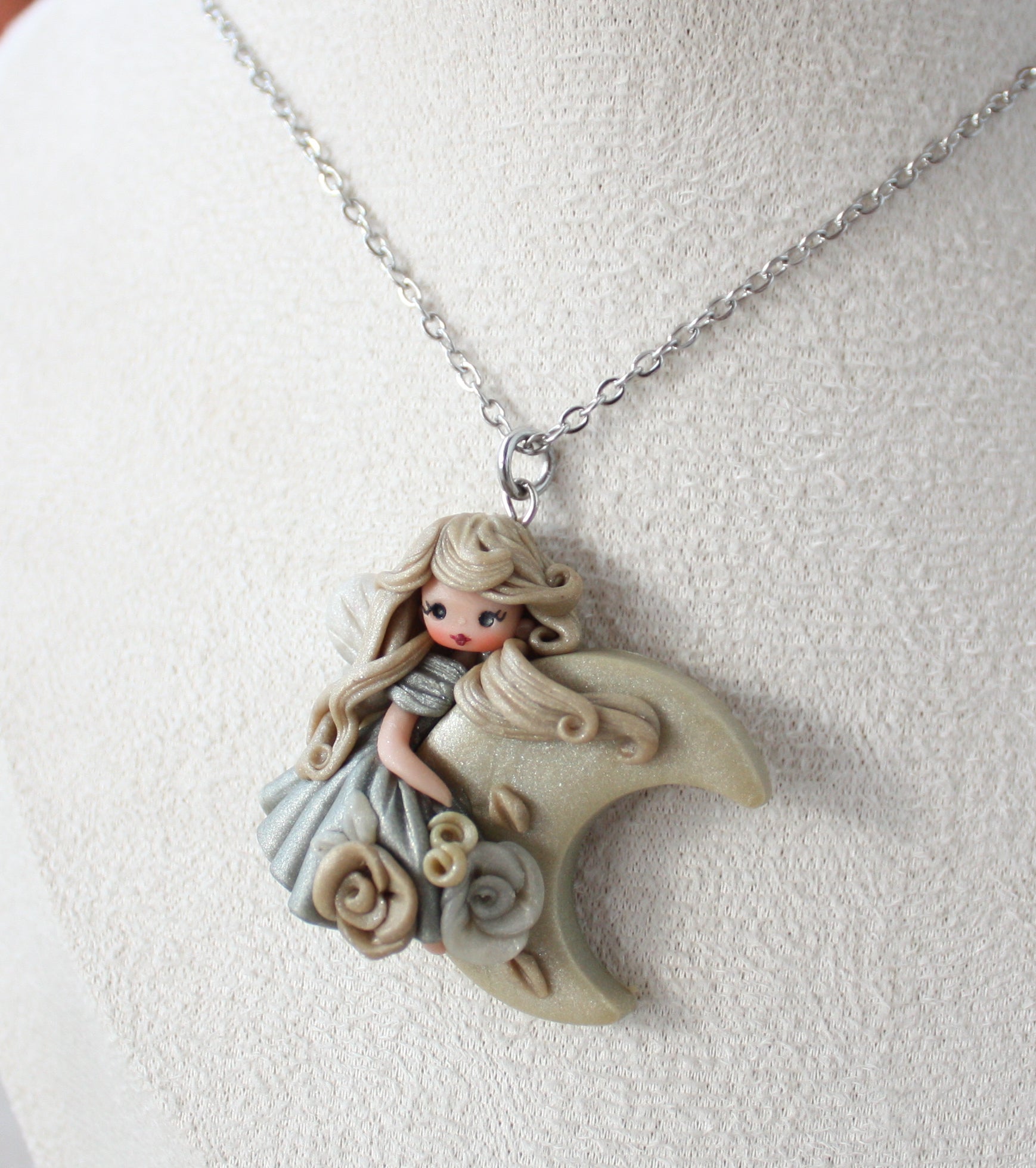 Piccola bambolina realizzata in pasta polimerica senza stampi.