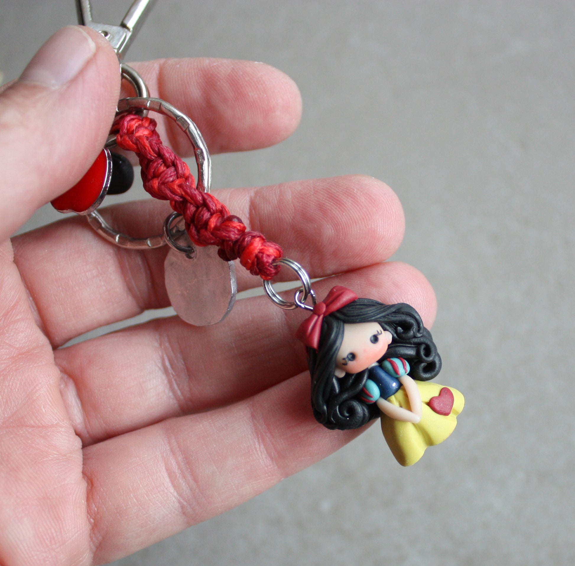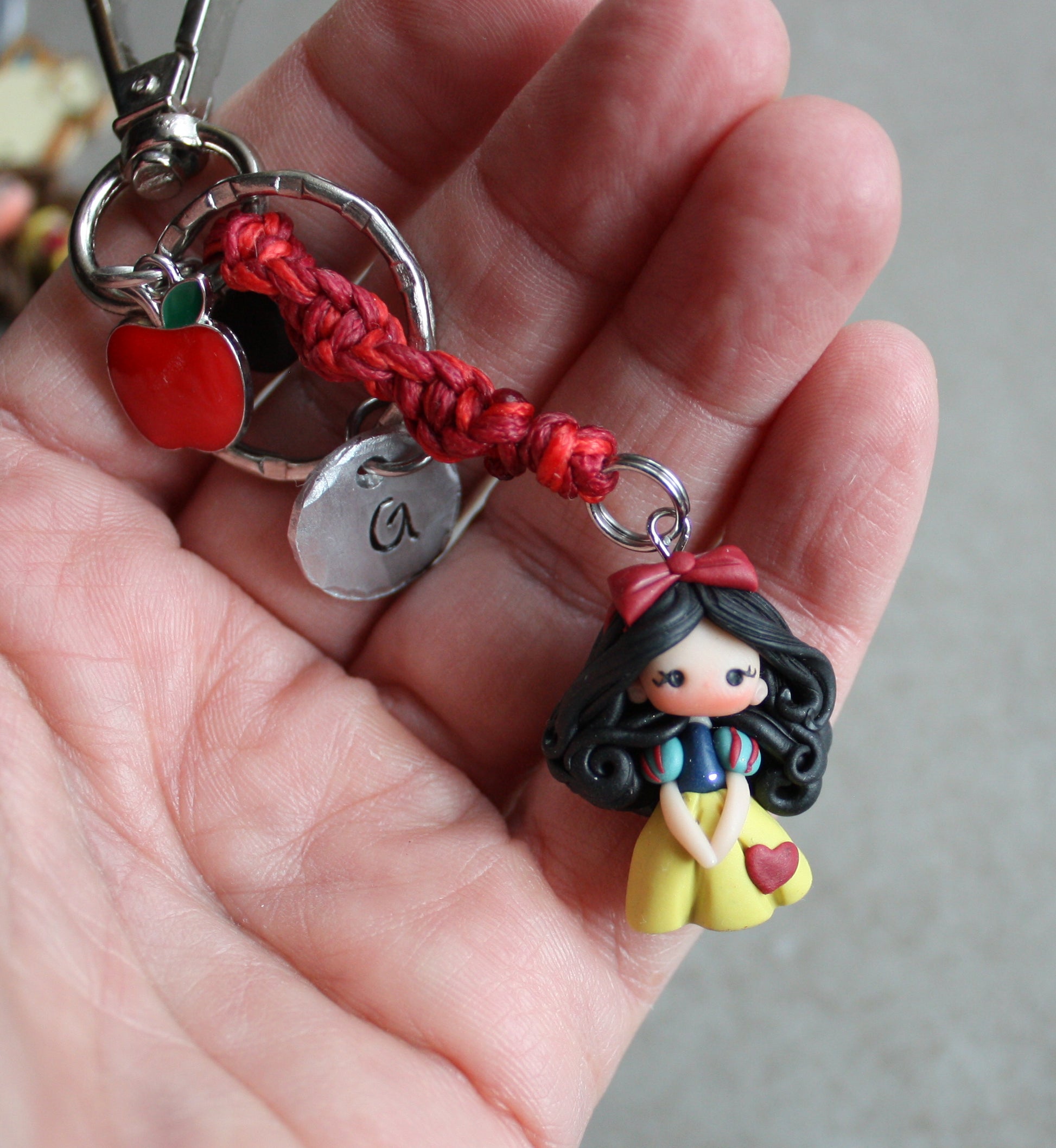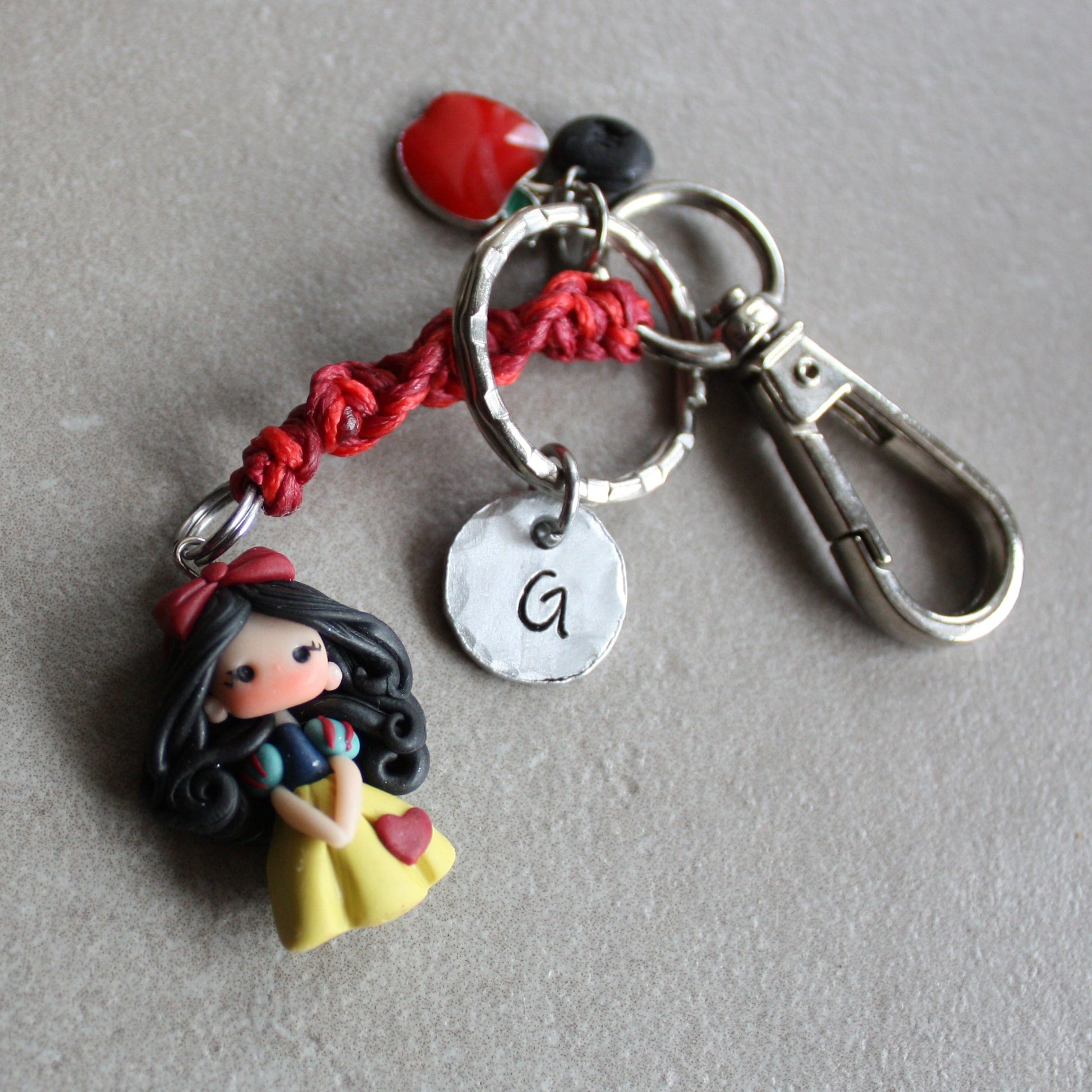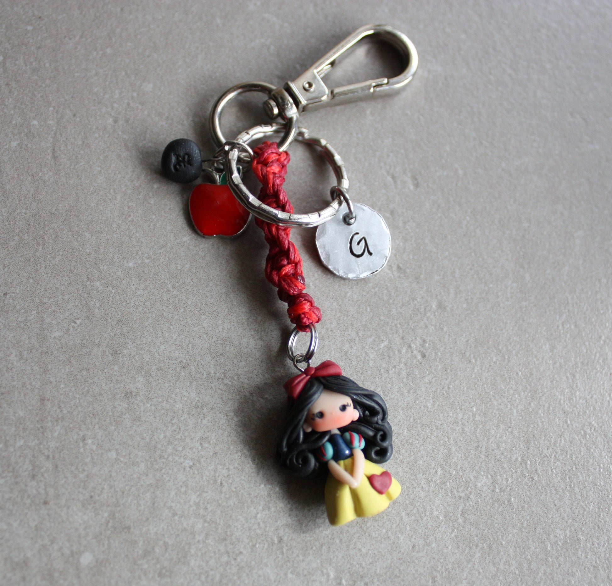 Portachiavi / Charm da borsa Biancaneve in macramè con lettera personalizzata