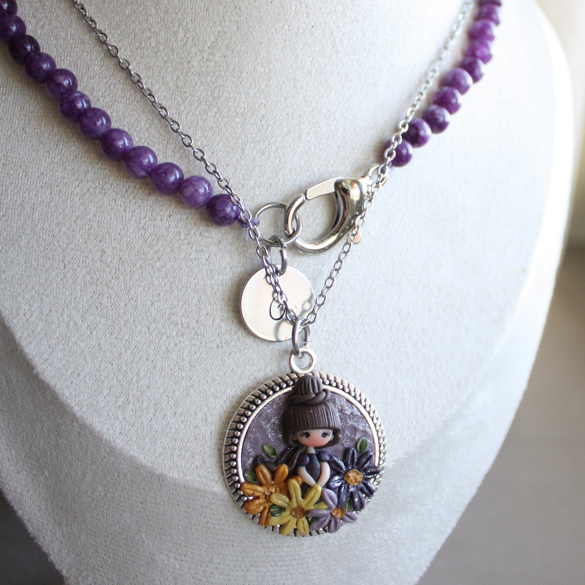 Collana con fatina in fimo e cammeo – 55 cm / 21 inches